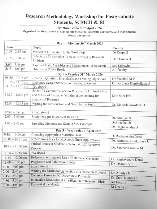 Organized by: Scientific Committee and Post Graduate Committee of SCMCH&RI